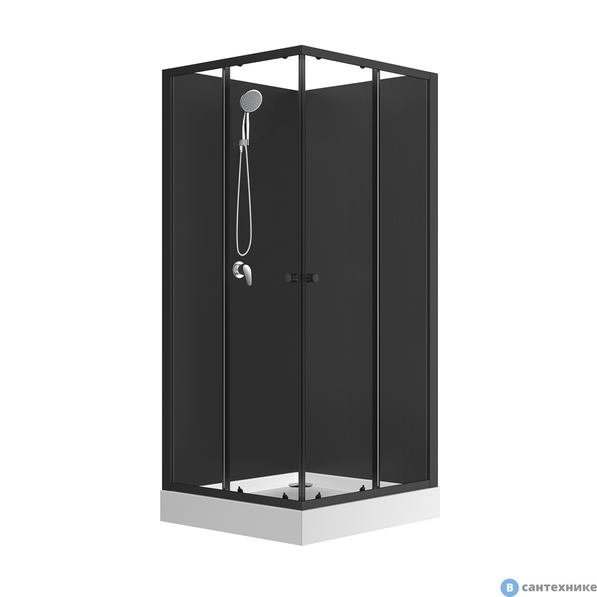 Душевая кабина Loranto CS-21801BP 90x90x(190+15) см с низким поддоном 15 см, прозрачное стекло, задние стенки черный, профиль черный (Китай) по