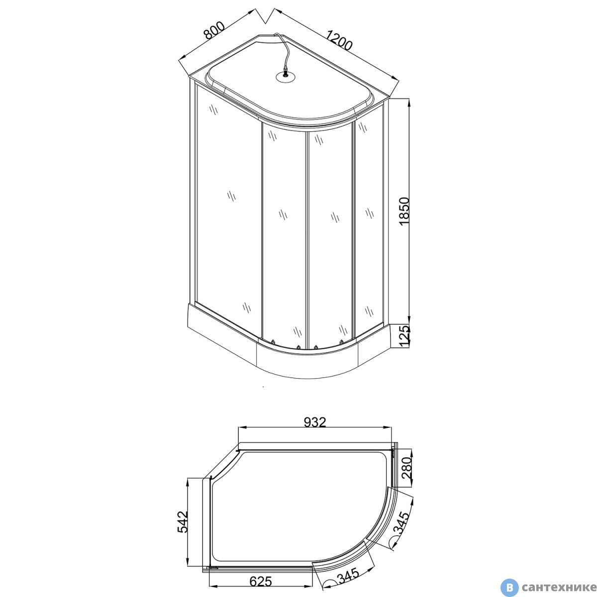 Душевая кабина Loranto CS-66120-13L FW 120*80*215 белый кирпичный узор, матовое стекло, профиль хром (Китай) по