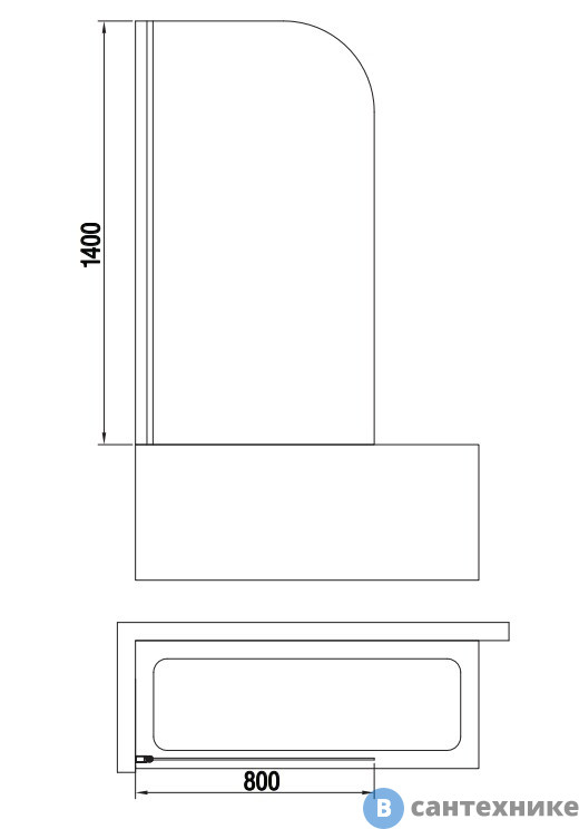 Шторка на ванну Band Hours EKO 80 чёрн. матовый (800х1400) (Германия/Китай) по