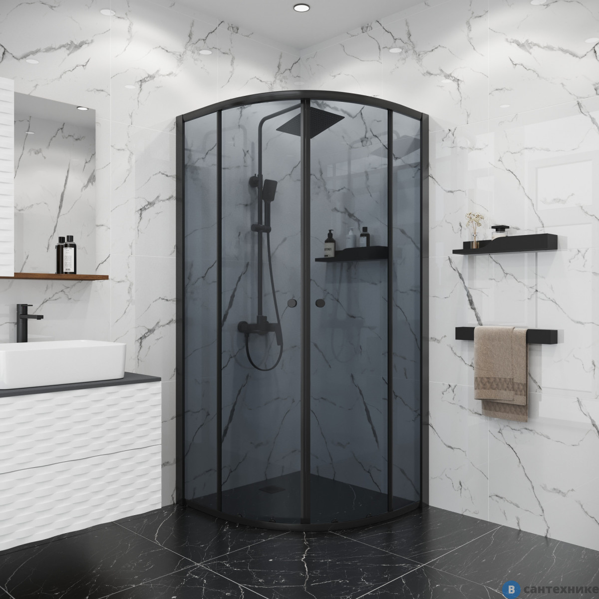 Душевое ограждение Niagara Eco NG-1003-14T (80х80х190) четверть круга, раздвижное, черный, стекло тонированное (Китай) по