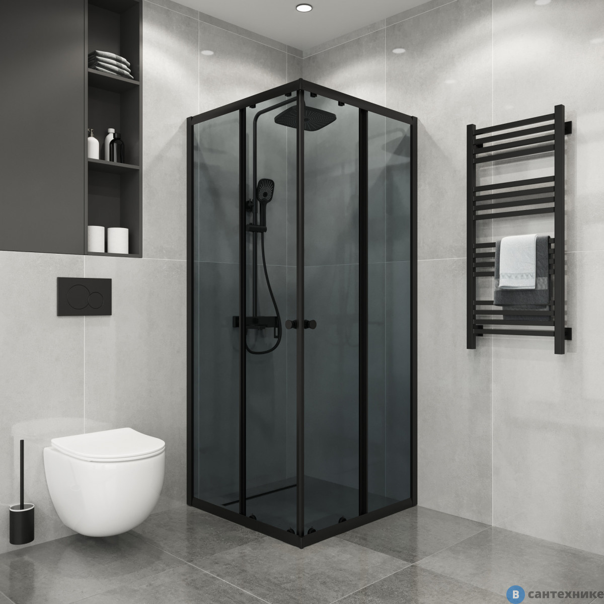 Душевое ограждение Niagara Eco NG-1008-14QT (80х80х190) квадрат, раздвижное, черный, стекло тонированное (Китай) по