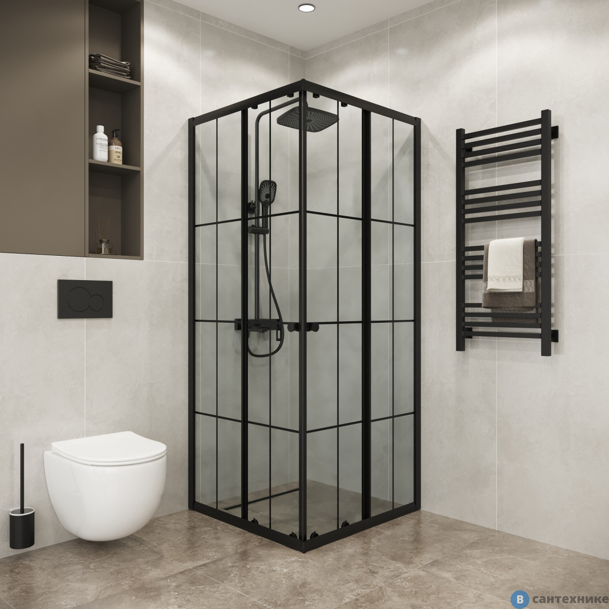 Душевое ограждение Niagara Eco NG-1010-14QKL (100х100х190) квадрат, раздвижное, черный, стекло клетка (Китай) по