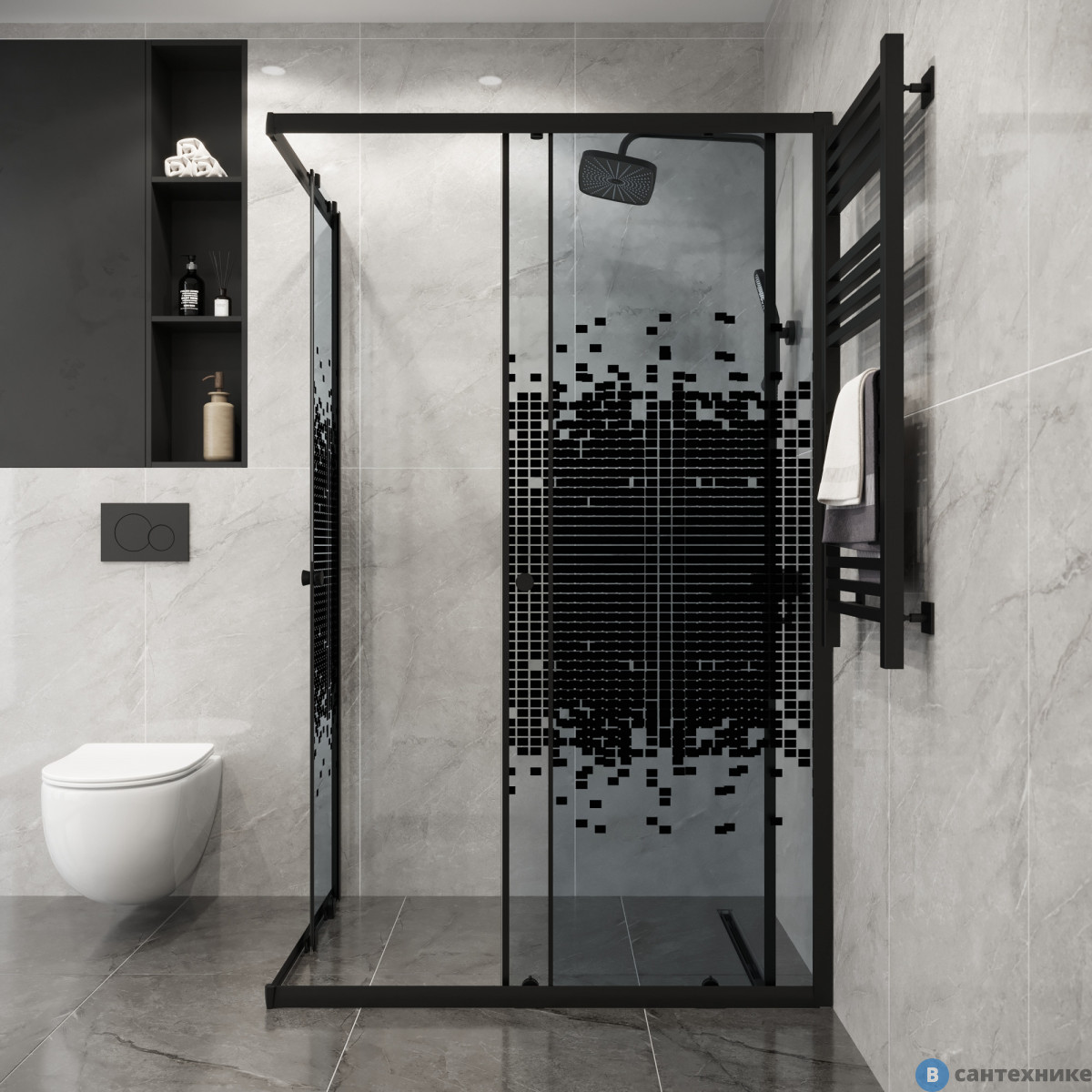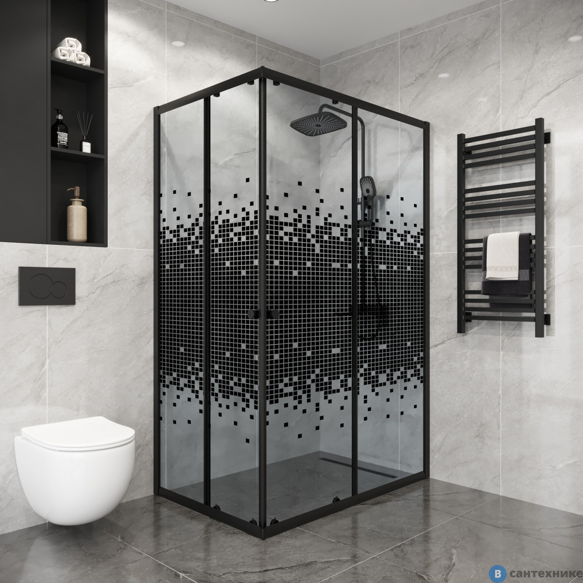 Душевое ограждение Niagara Eco NG-1018-14Q BLACK (100х80х190) прямоугольник, раздвижное, черный, стекло мозаика (Китай) по