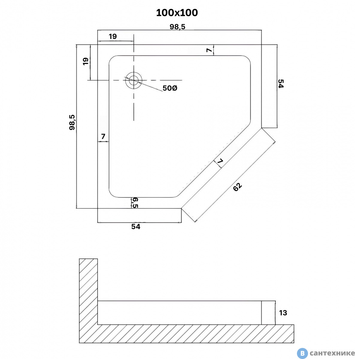 Душевой поддон Niagara NG-P1010-14D (100х100х13) трапеция по