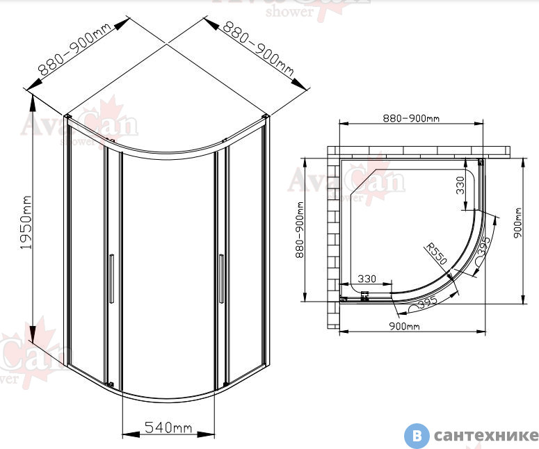 Душевой уголок AvaCan HC 90 MT (HC90MT) по