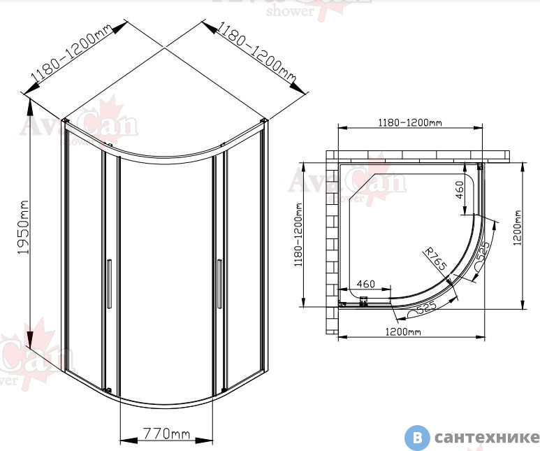 Душевой уголок AvaCan HB 120 MT (HB120MT) по