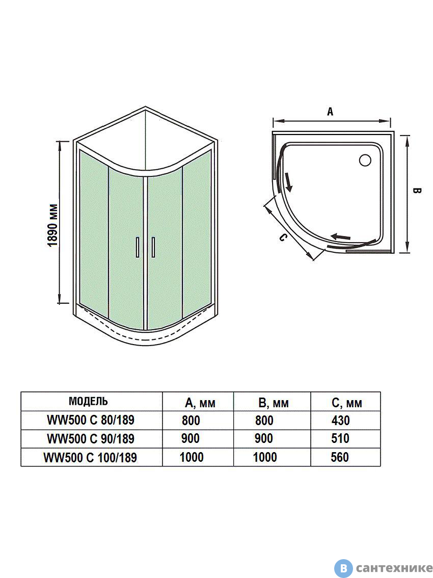 Душевое ограждение WELTWASSER WW500 С 80/189 XL H24 с поддоном (Германия/Китай) по