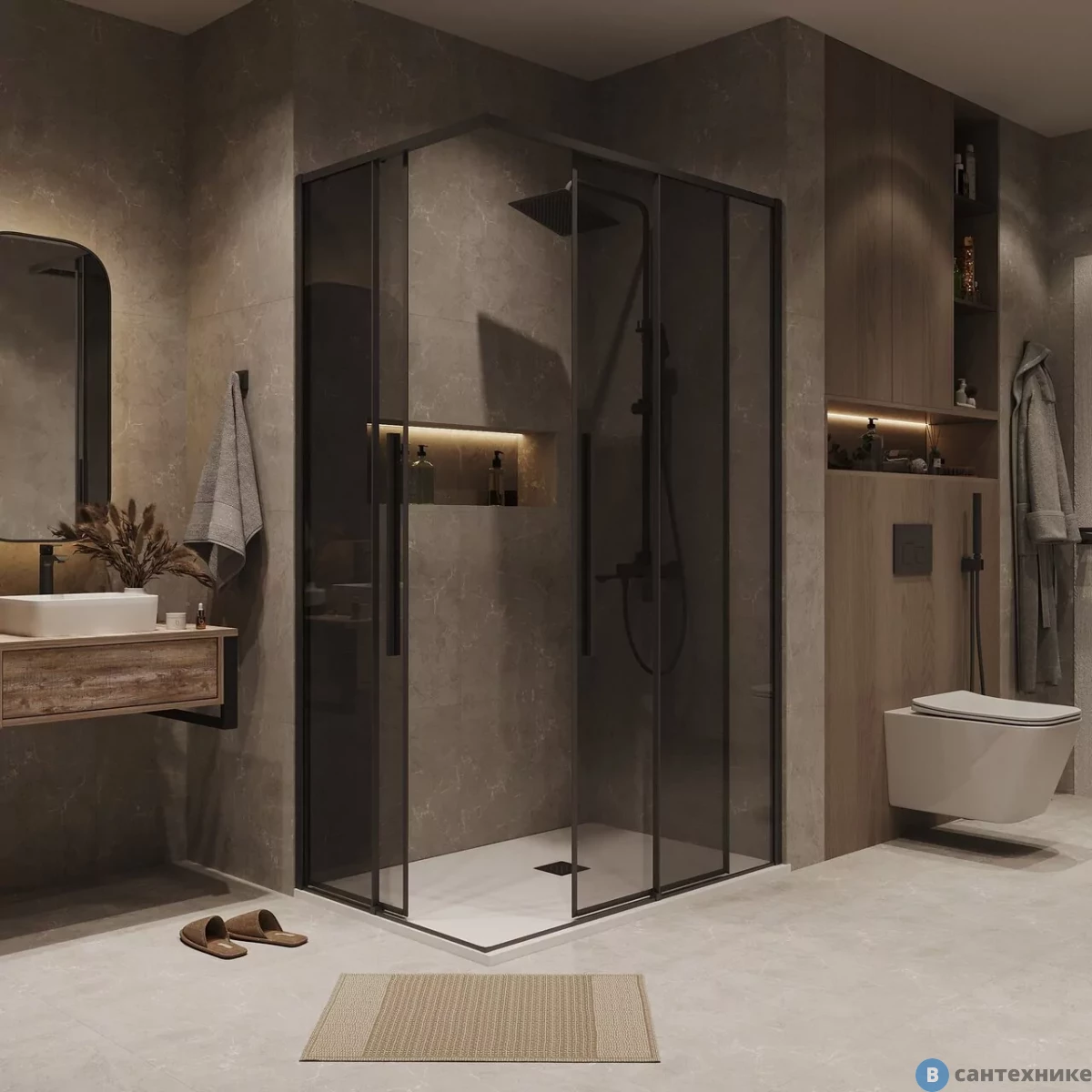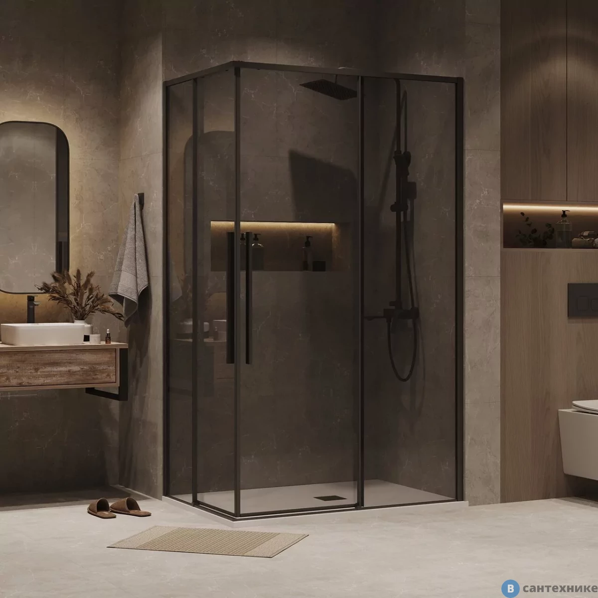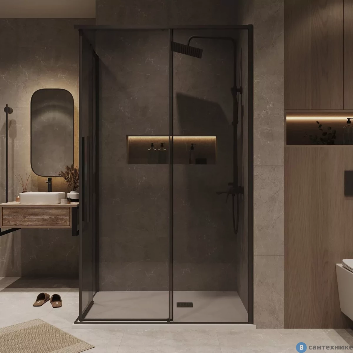 Душевое ограждение Grossman Galaxy (120х80х195) раздвижная, черный матовый, стекло тонированное (300.K33.01.1280.21.10) (Германия/Китай) по
