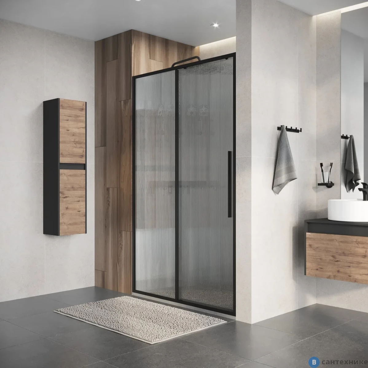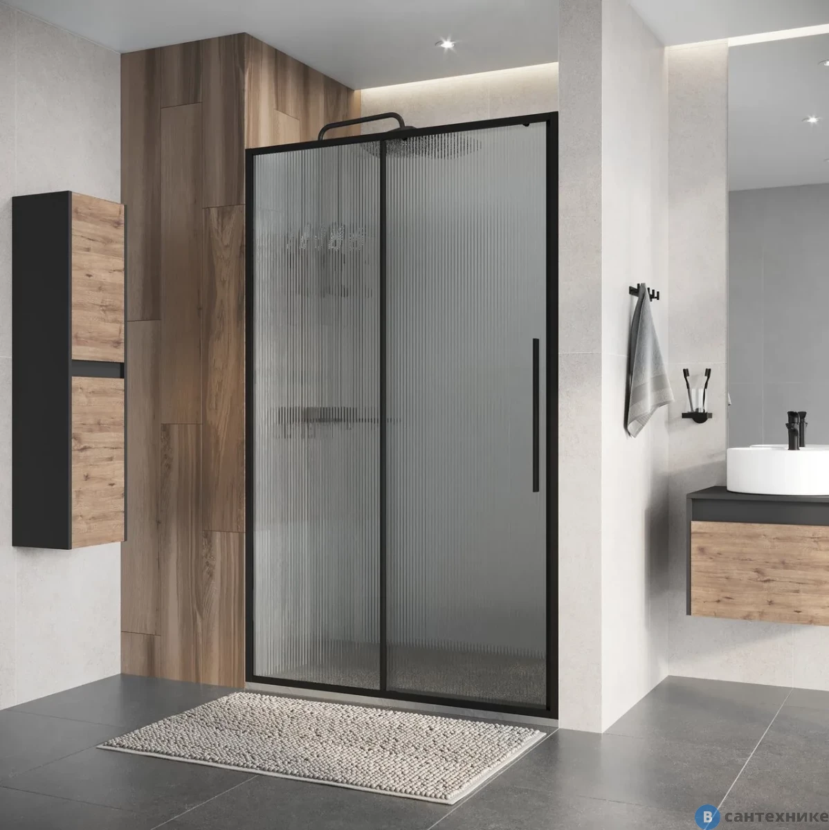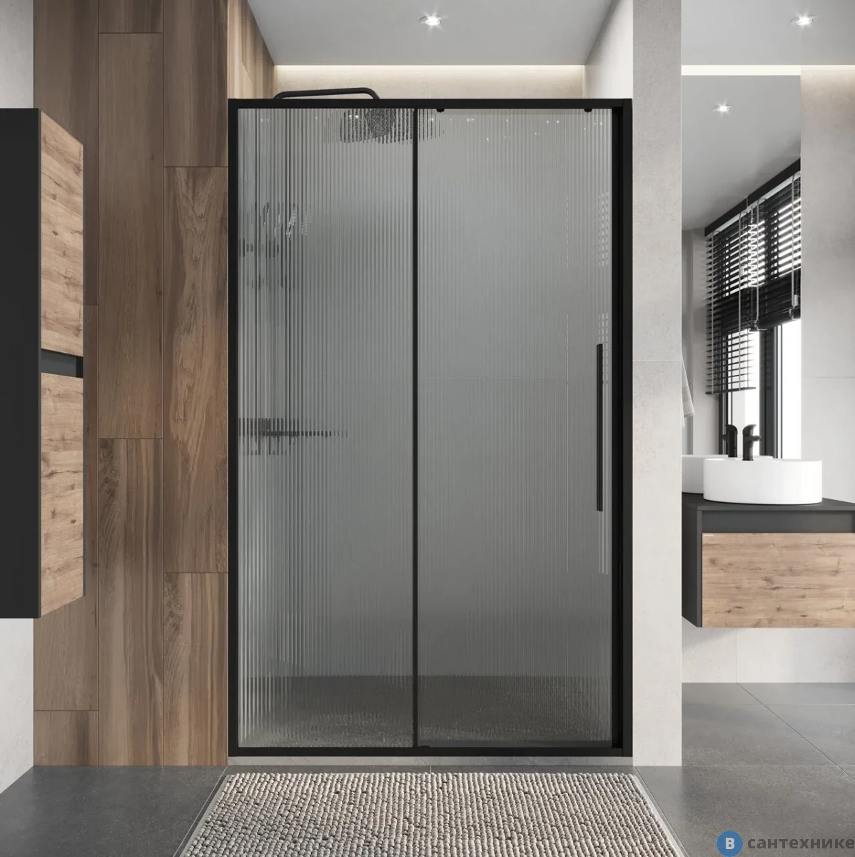 Дверь в нишу Niagara Nova NG-84-L12FHB (120х195) черный матовый, раздвижная влево, стекло рифленое (Китай) по