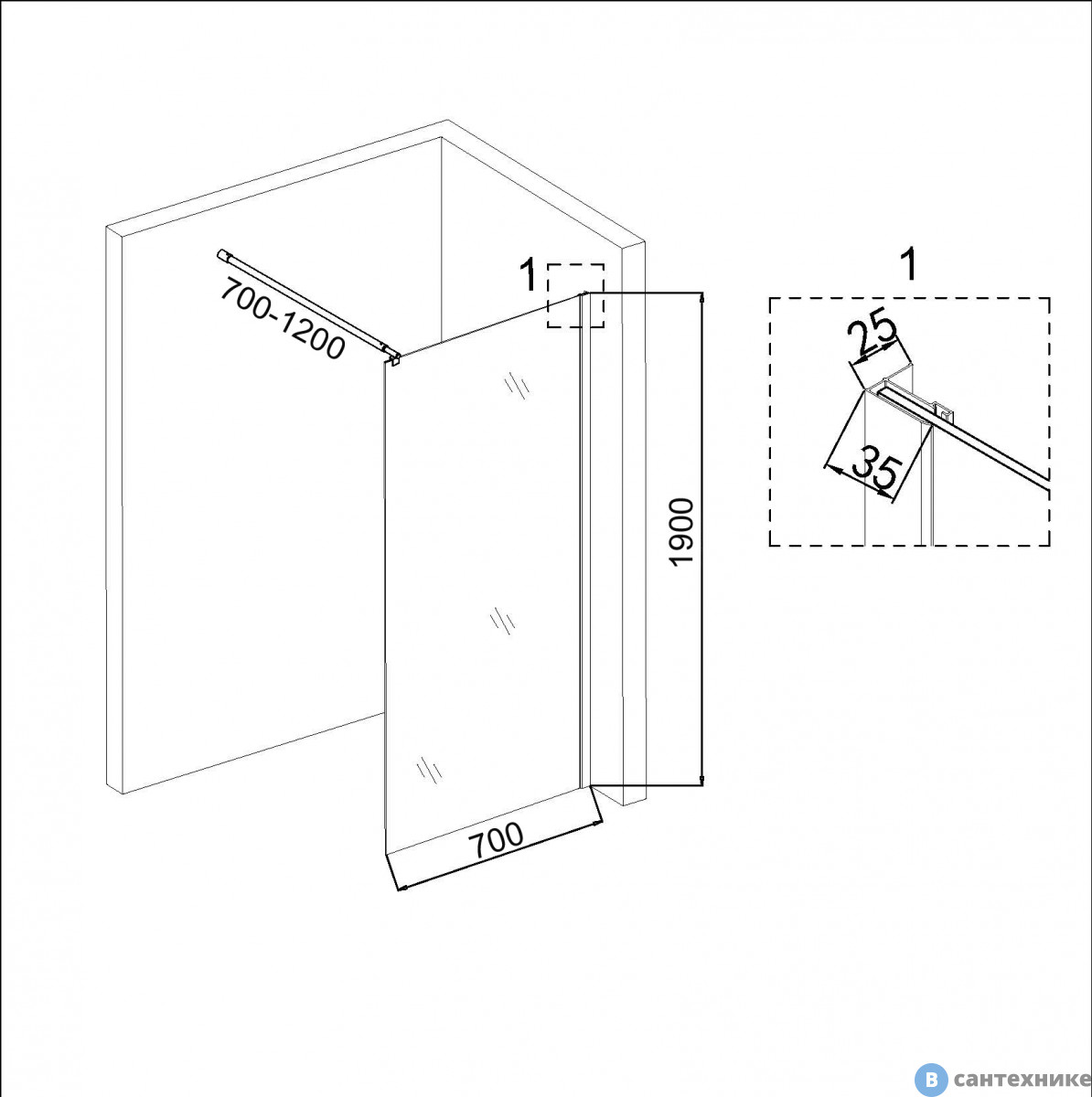 Душевая перегородка Niagara Eco NG-531-70 (70х190) хром, стекло прозрачное по