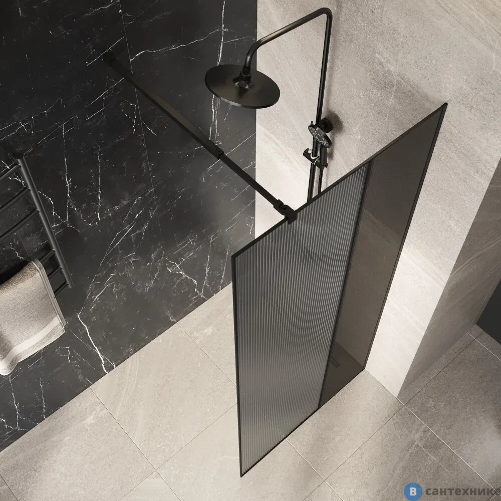 Душевая перегородка Niagara Nova NG-481-12F BLACK (120х200) черный матовый, стекло рифленое/тонированное (Китай) по