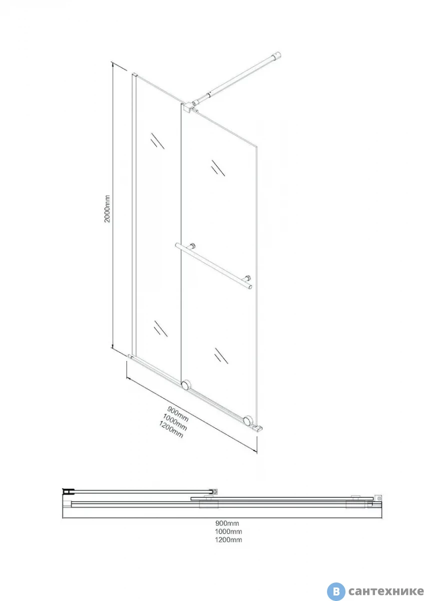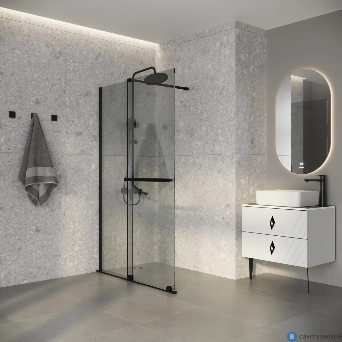 Душевая перегородка Niagara Nova NG-671-12 BLACK (120х200) черный матовый, раздвижная, стекло прозрачное (Китай) по