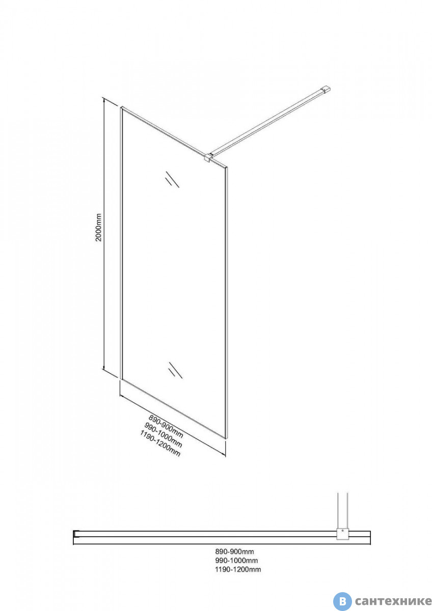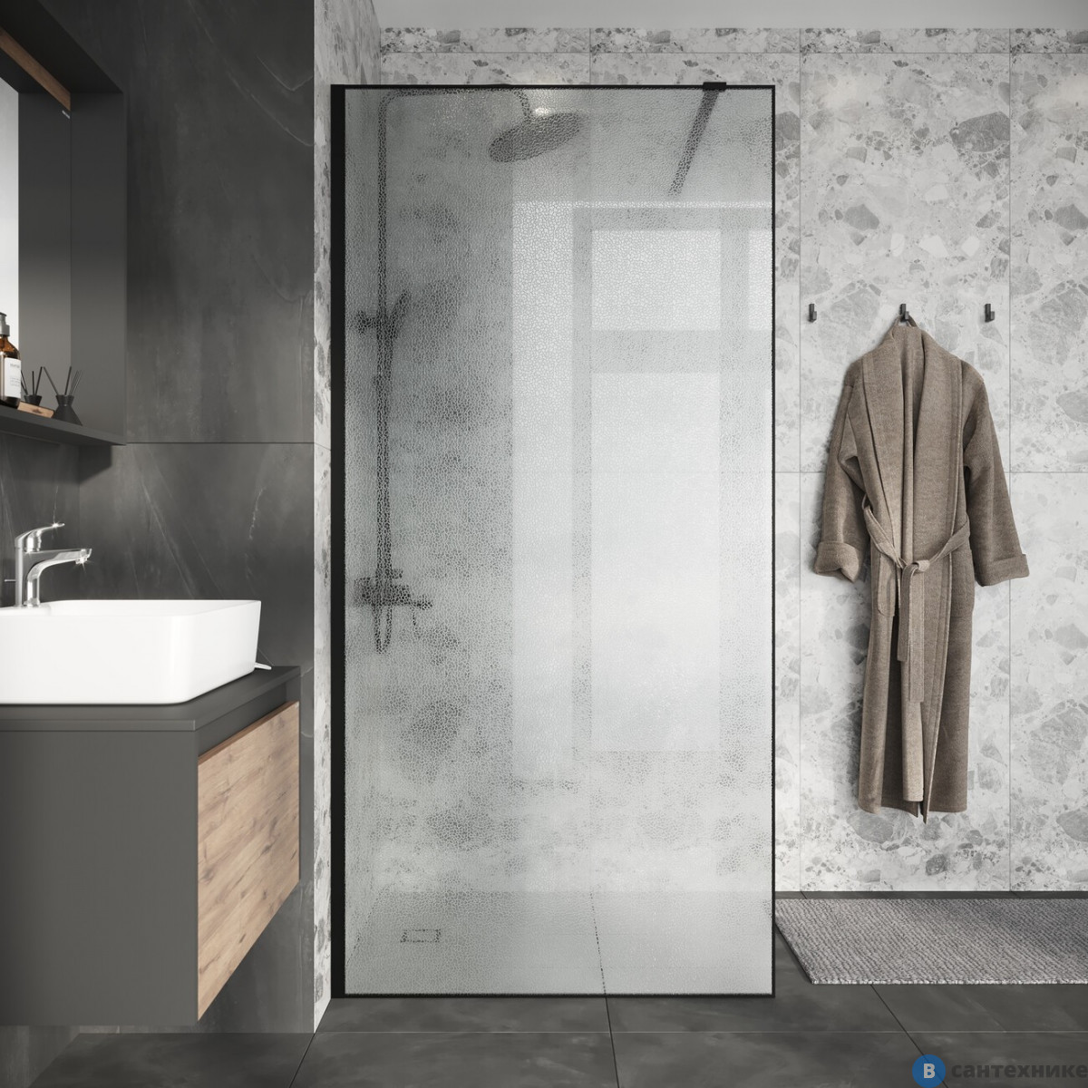 Душевая перегородка Niagara Nova NG-781-12 BLACK (120х200) черный матовый, стекло эффект битого стекла (Китай) по