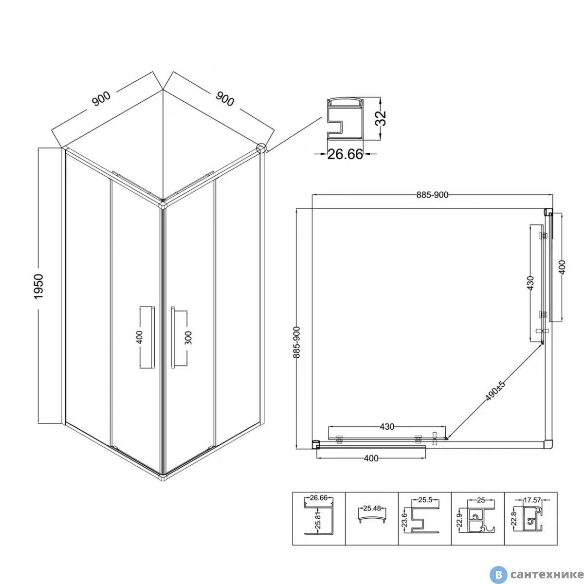 Душевое ограждение Niagara Nova NG-4623-34 (90х90х195) квадрат, раздвижная, хром, стекло рифленое (Китай) по