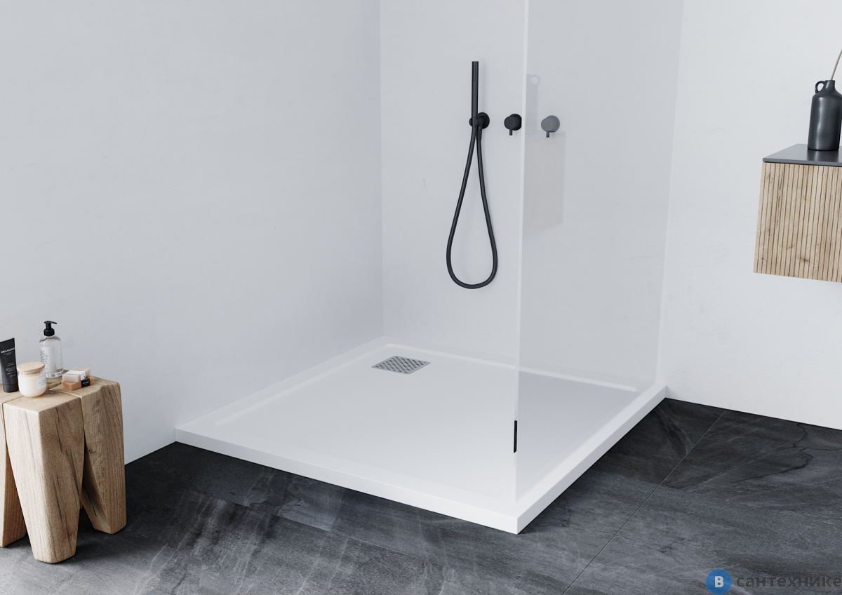 Душевой поддон Taliente PTA-ST-100Wstone 100х100 литьевой мрамор белый матовый (Италия/Китай) по