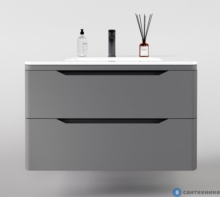 Тумба под раковину Style line подвесная Марелла 90 (2 ящ.) Люкс антискрейтч серый, PLUS (2000672592009) (Россия) по