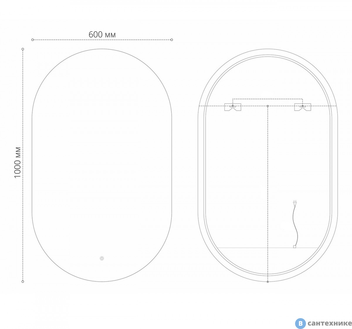 Зеркало Grossman NERO-промо (600*1000*45) LED с сенсорным выключателем (2460100) (Германия/Китай) по