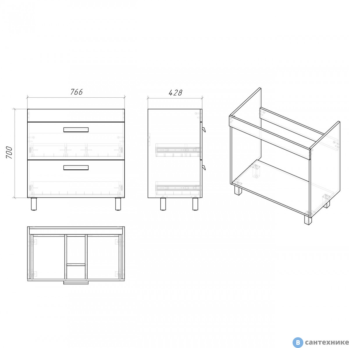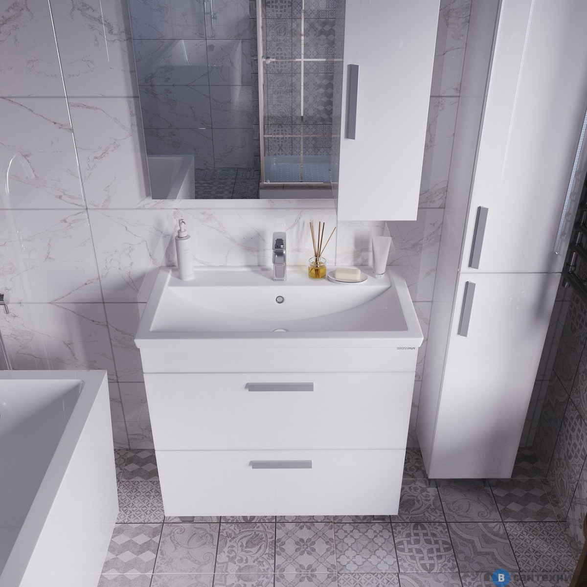 Тумба под раковину Grossman НЕО-80 см напольная с 2-я ящ. белая (ум.Фостер-80) (108019) (Германия/Китай) по
