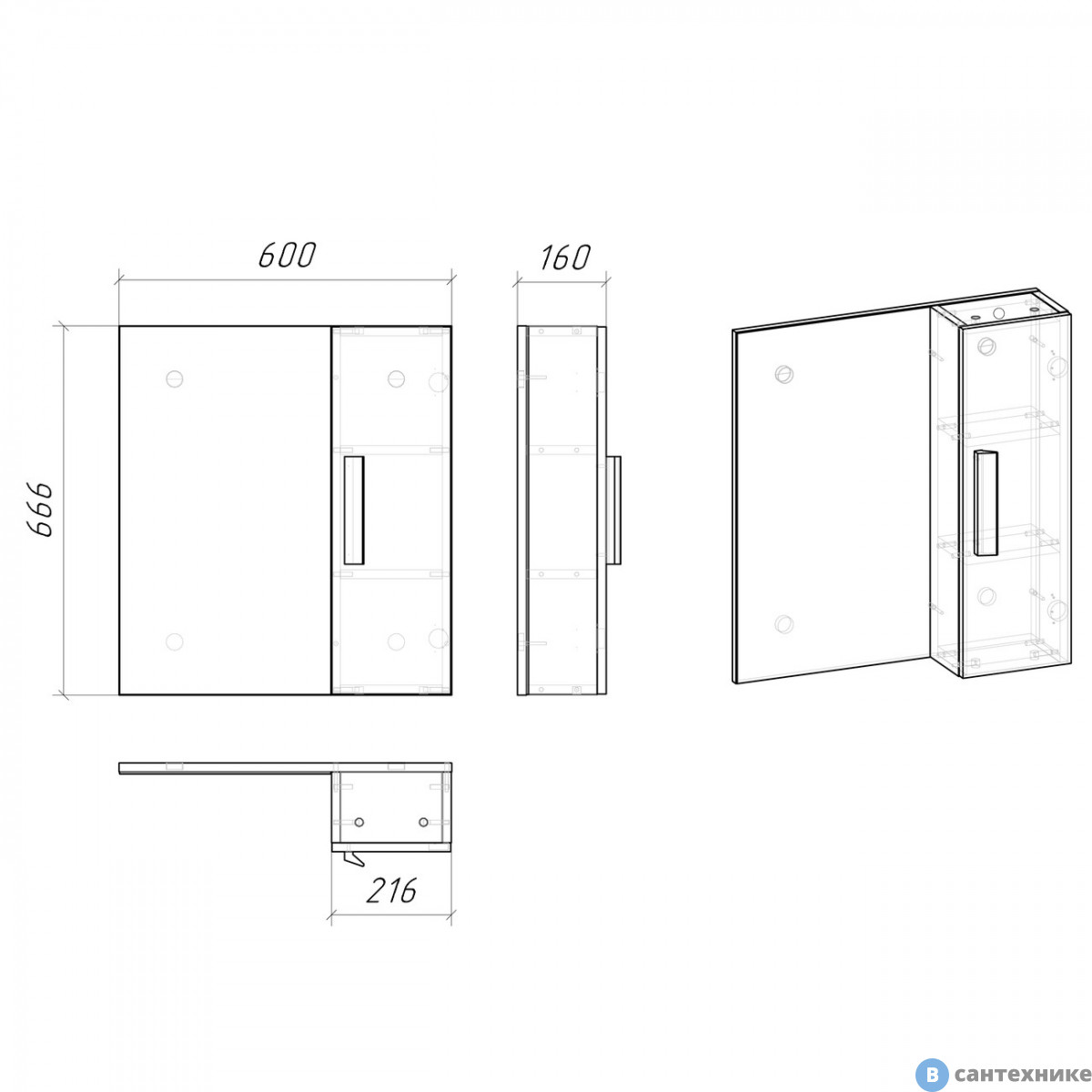 Шкаф-зеркало Grossman НЕО-60 см универсал. белый (206022) (Германия/Китай) по