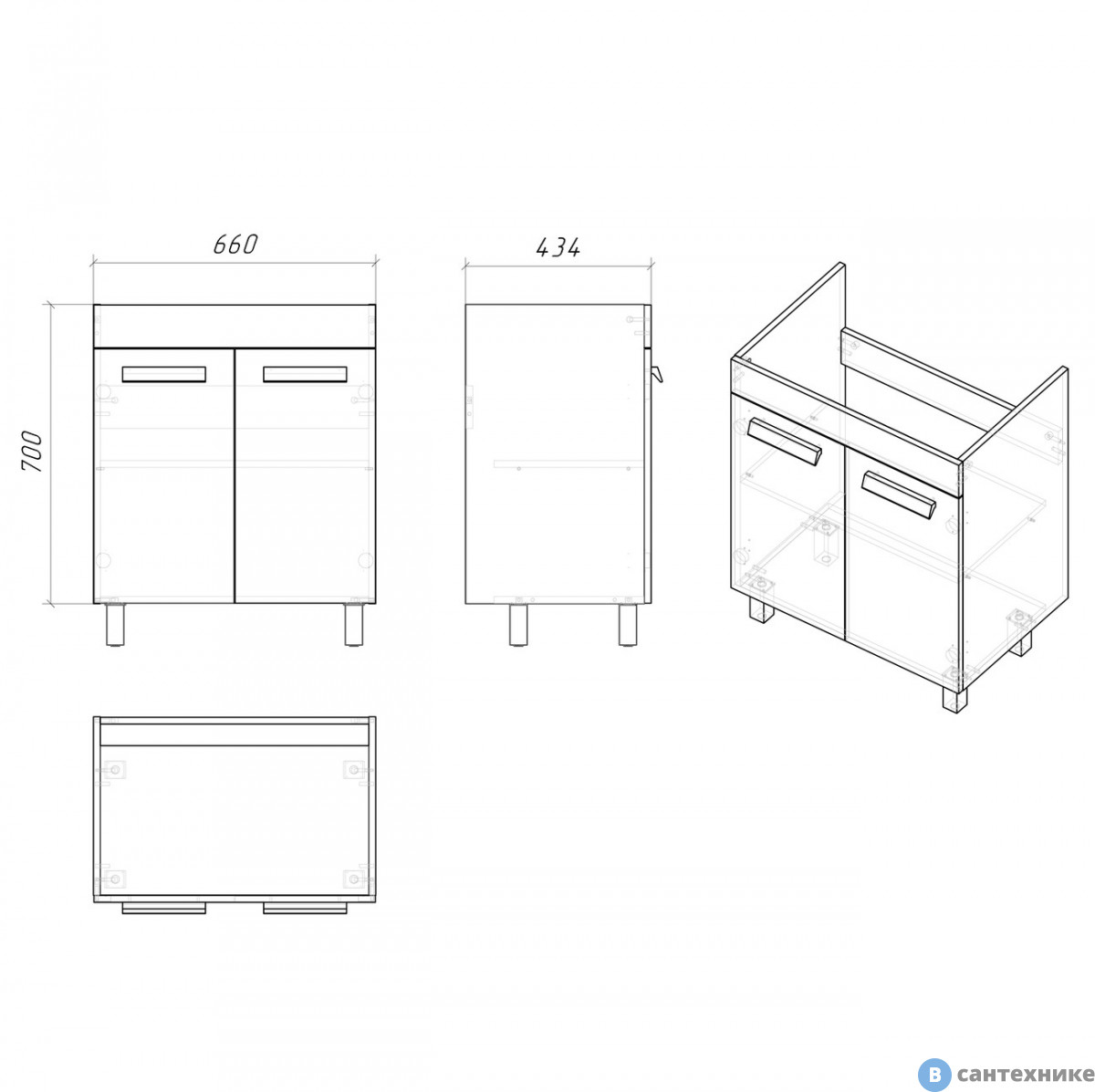 Тумба под раковину Grossman НЕО-70 см в краске, напольная белая (ум. Фостер-70) (107013-1K) по