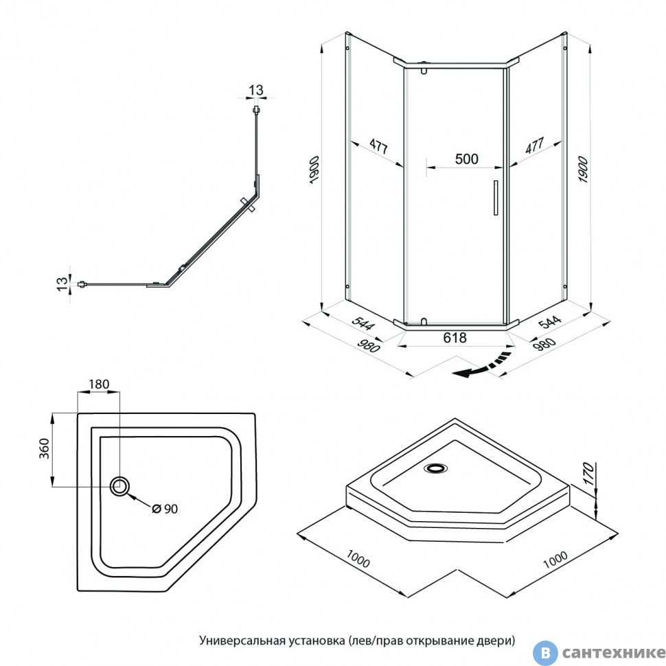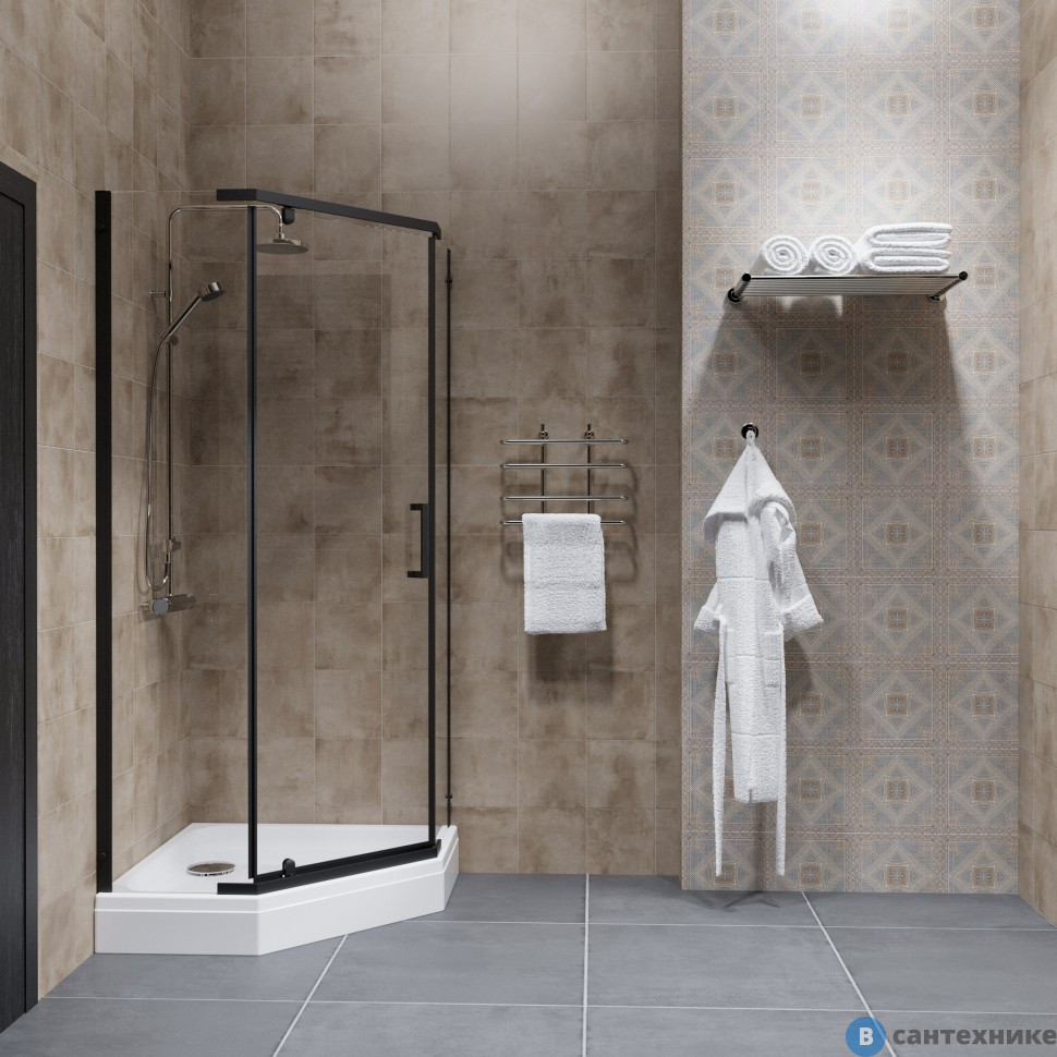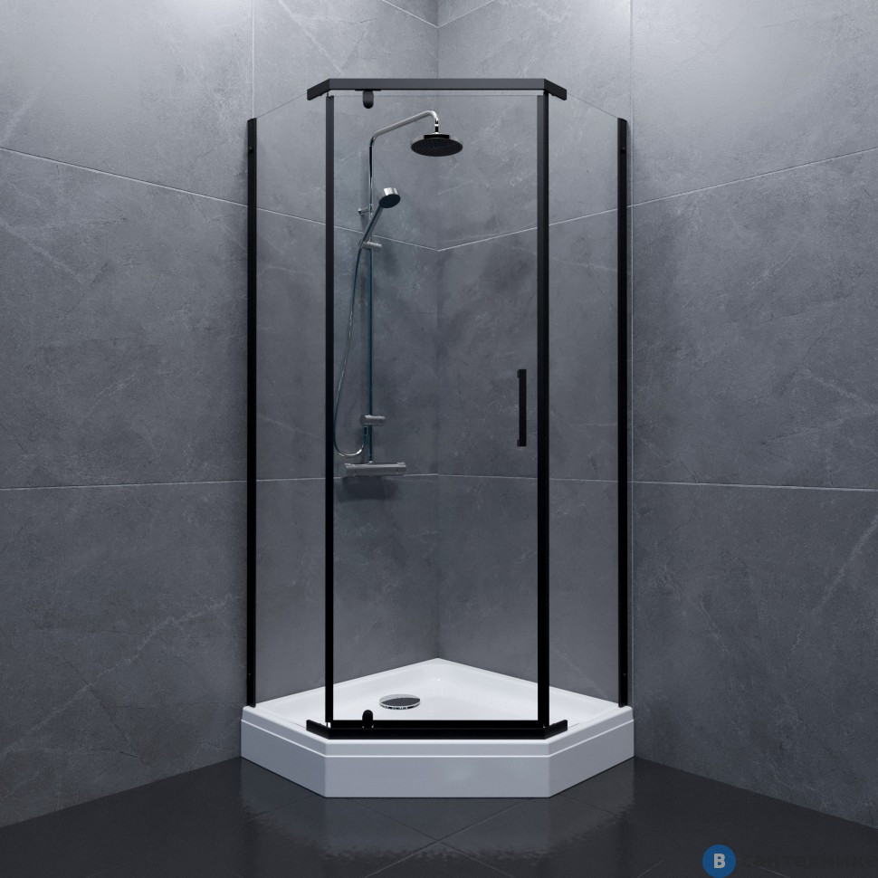 Душевое ограждение Тритон Дека-Блэк, 100х100, пятиуг., низ. подд. (сифон D90 мм) (DK353) по