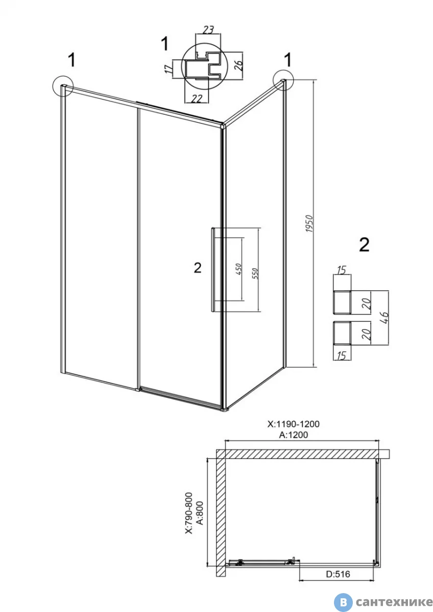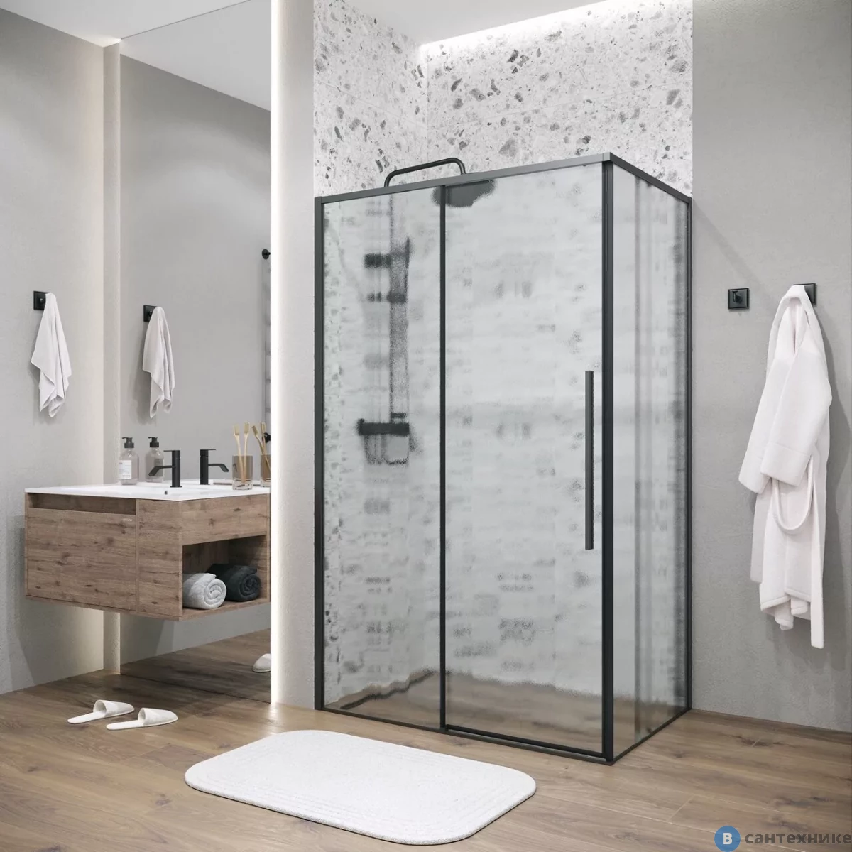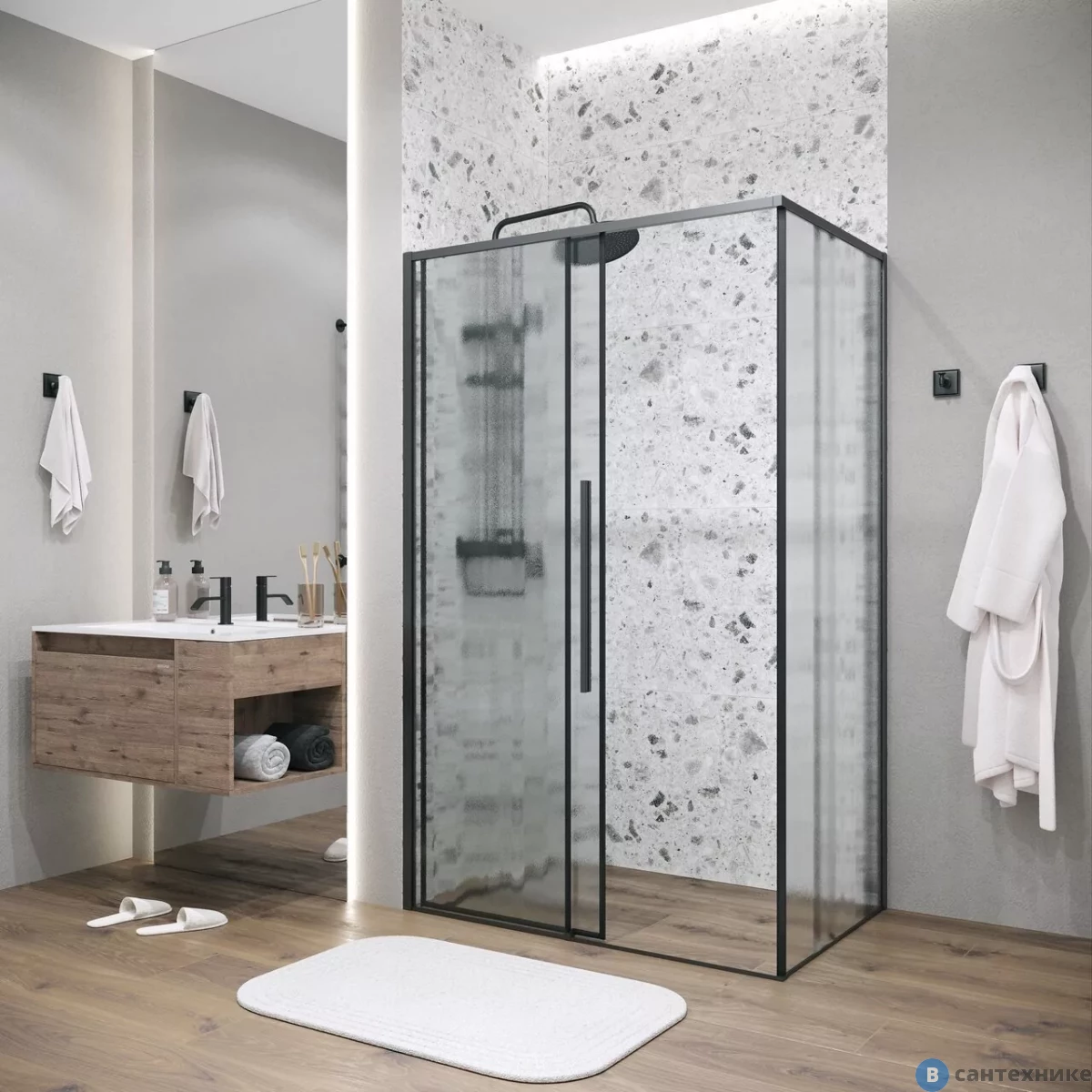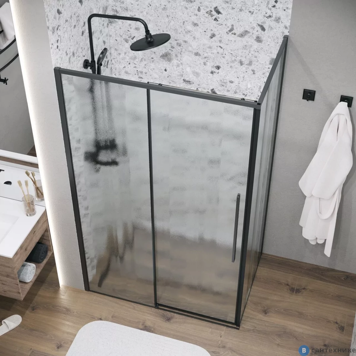 Душевое ограждение Grossman Galaxy (120х80х195) раздвижная, черный матовый, стекло шиншилла 300.K33.01.12R80L.21.02) (Германия/Китай) по