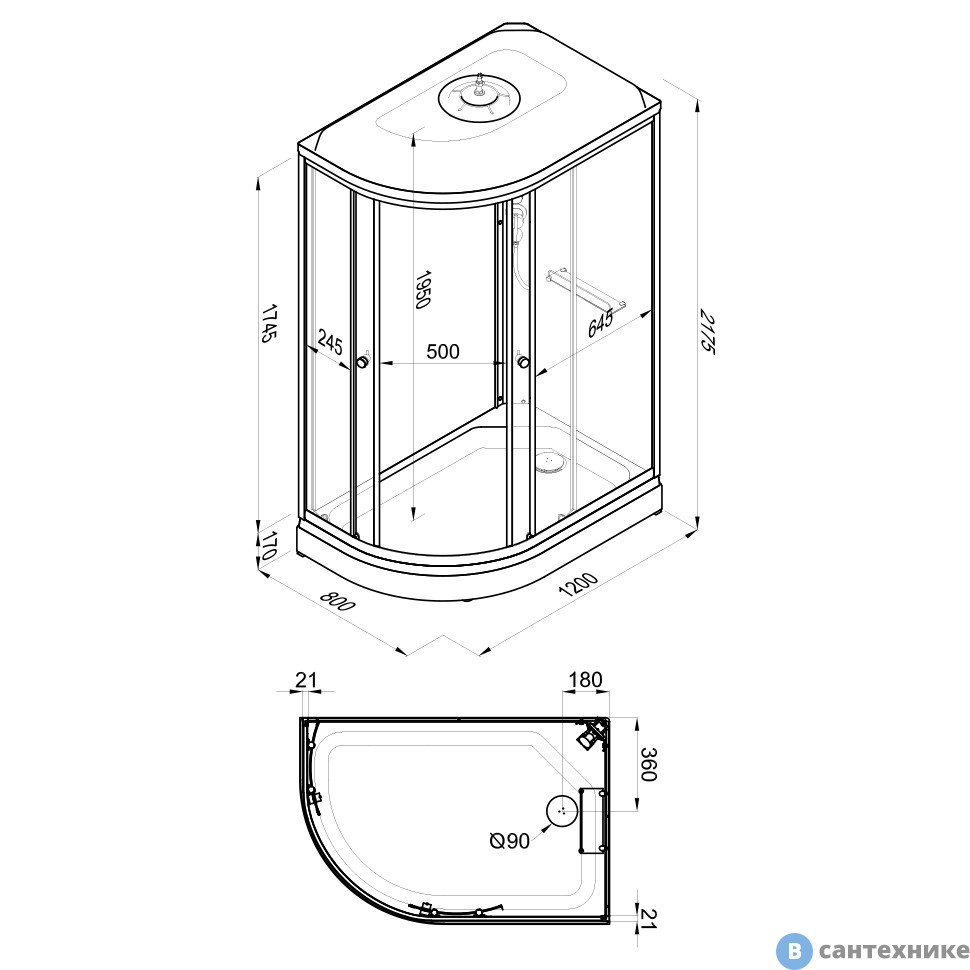 Душевая кабина Тритон Коралл-Лайт 120*80 А правая (DK384) (Россия) по