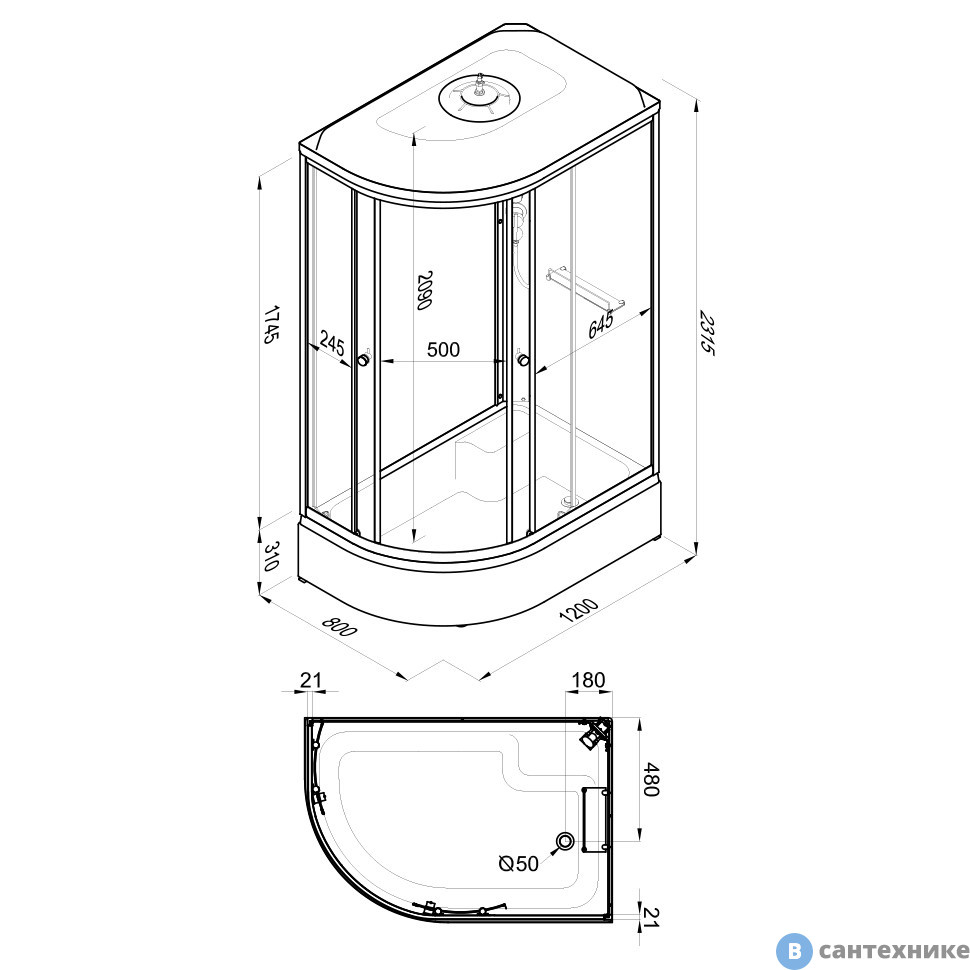 Душевая кабина Тритон Коралл-Лайт 120*80 В правая (DK386) (Россия) по