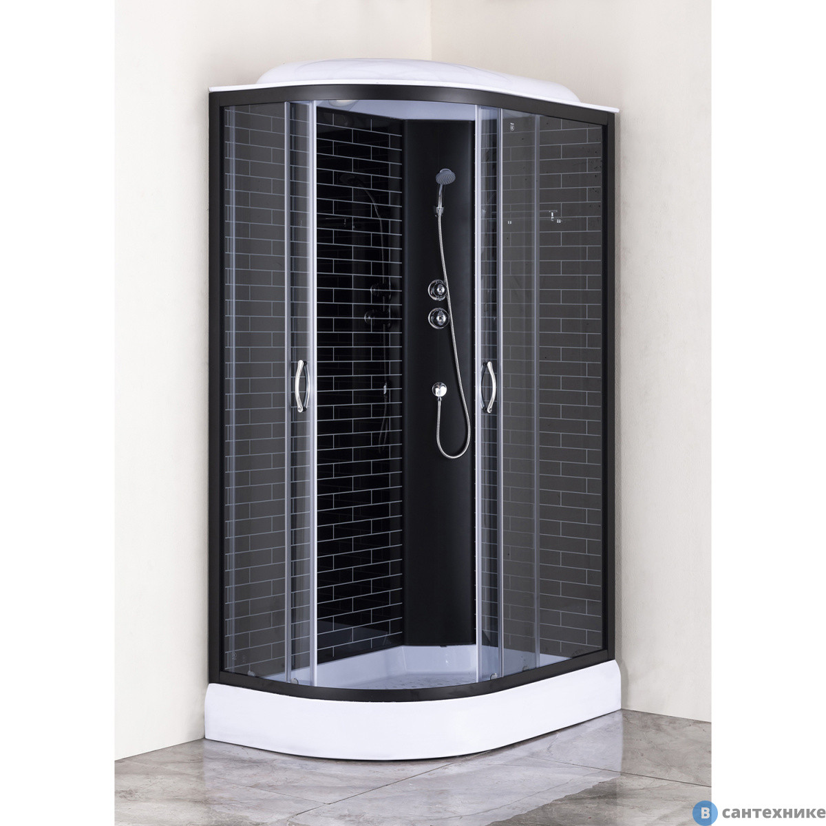 Душевая кабина Loranto CS-66120-13R GB 120*80*215 черный кирпичный узор, прозрач. стекло, профиль черный (Китай) по