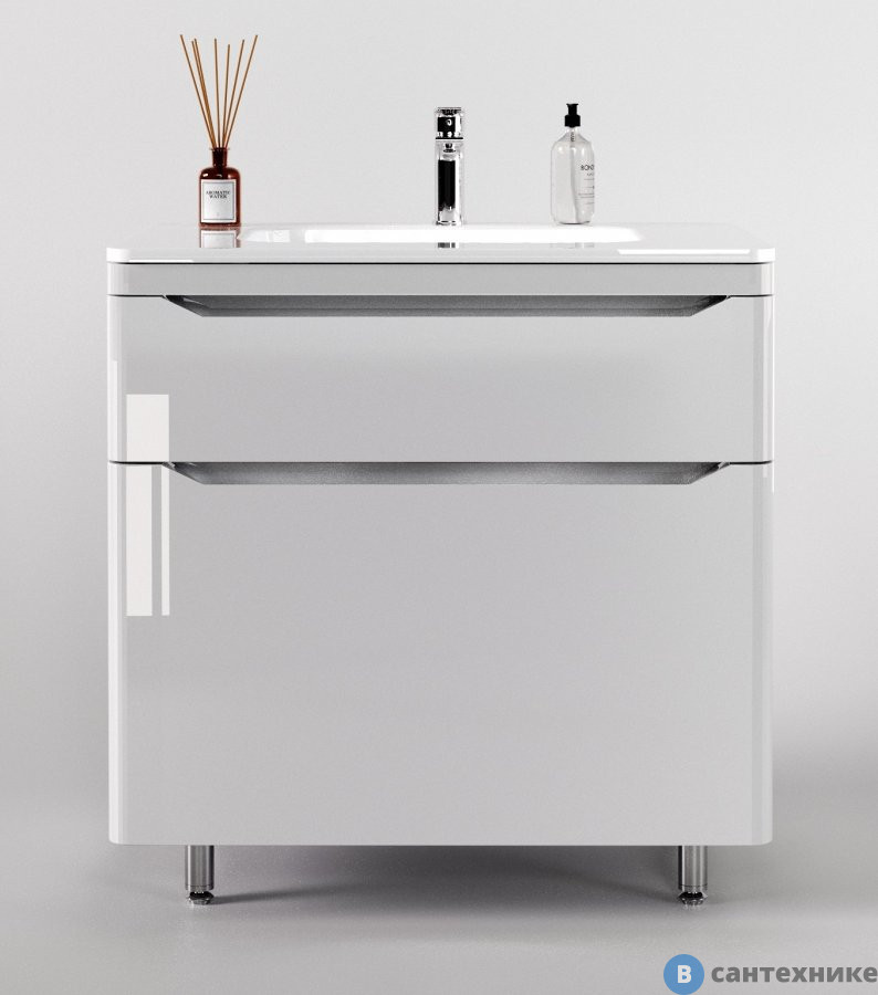 Тумба Style line напольная Марелла 80 (2 ящ.) Люкс антискрейтч белый глянец, PLUS (2000949237619) (Россия) по