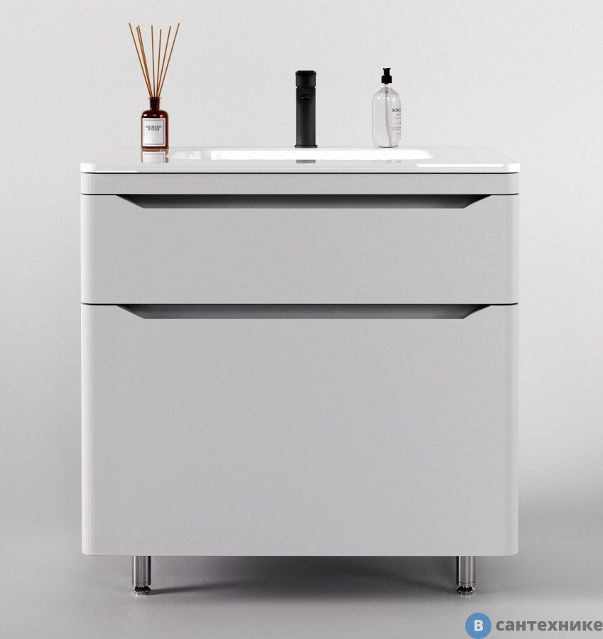 Тумба под раковину Style line напольная Марелла 80 (2 ящ.) Люкс антискрейтч белый матовый, PLUS (2000672341003) (Россия) по
