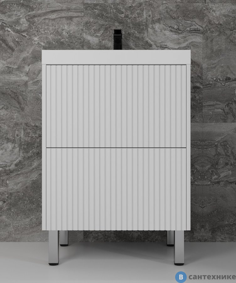 Тумба Style line напольная Стокгольм 60, Classic 60, (2 ящ.) белый рифленый софт, PUSH (4650134473452) (Россия) по