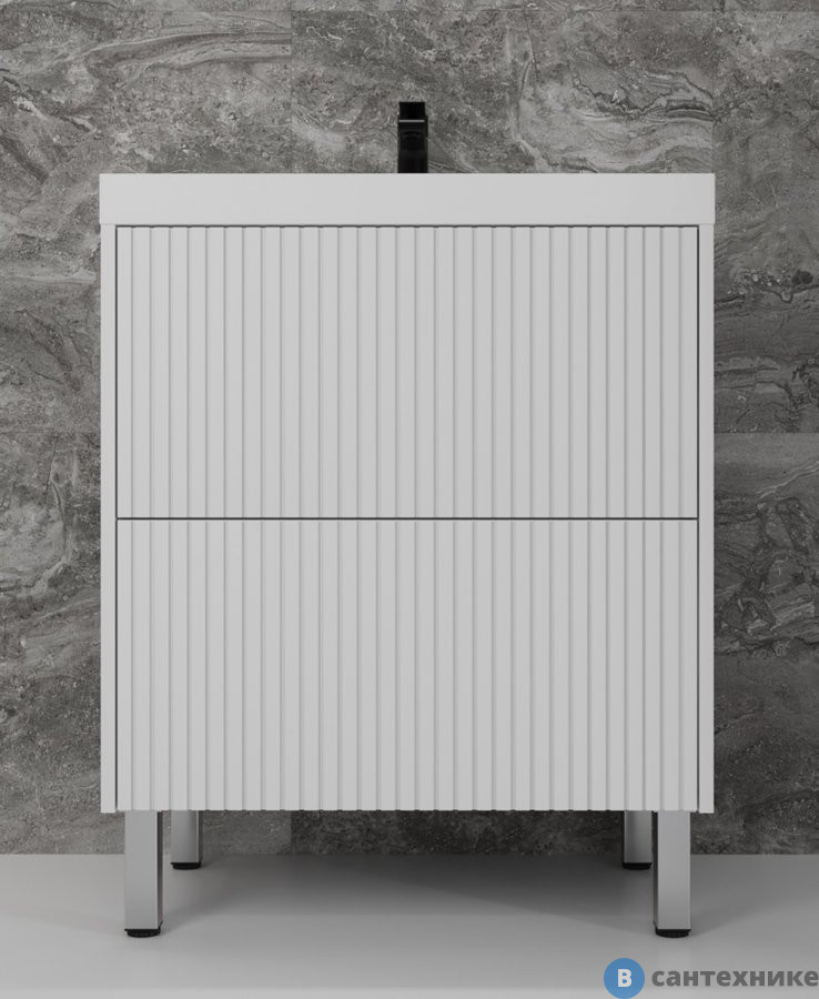 Тумба под раковину Style line напольная Стокгольм 70, Classic 70, (2 ящ.) белый рифленый софт, PUSH (4650134473469) (Россия) по