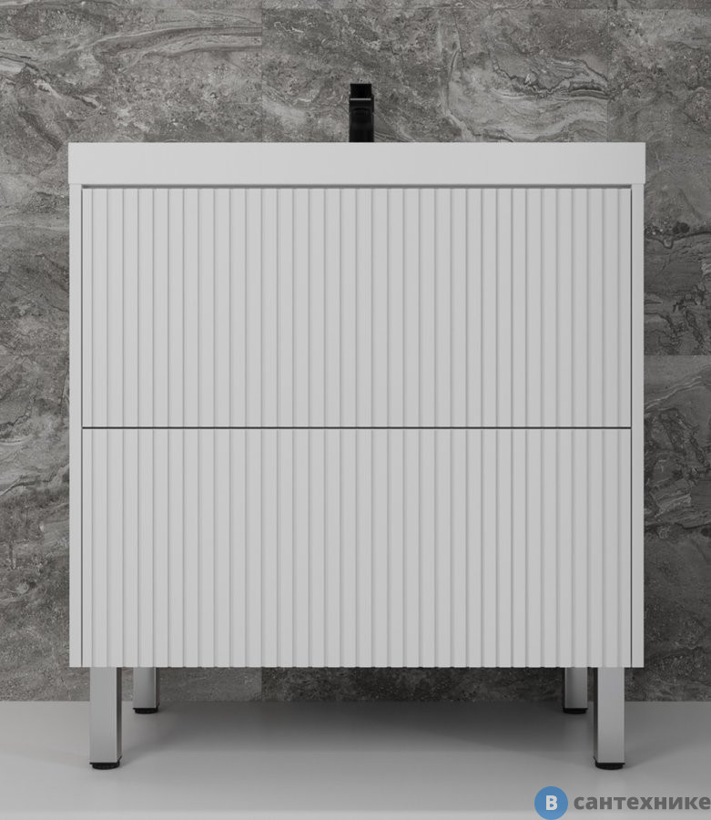 Тумба под раковину Style line напольная Стокгольм 80, Classic 80, (2 ящ.) белый рифленый софт, PUSH (4650134473476) (Россия) по