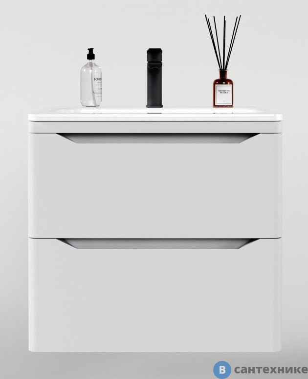 Тумба под раковину Style line подвесная Марелла 70 (2 ящ.) Люкс антискрейтч белый матовый, PLUS (2000949237664) (Россия) по