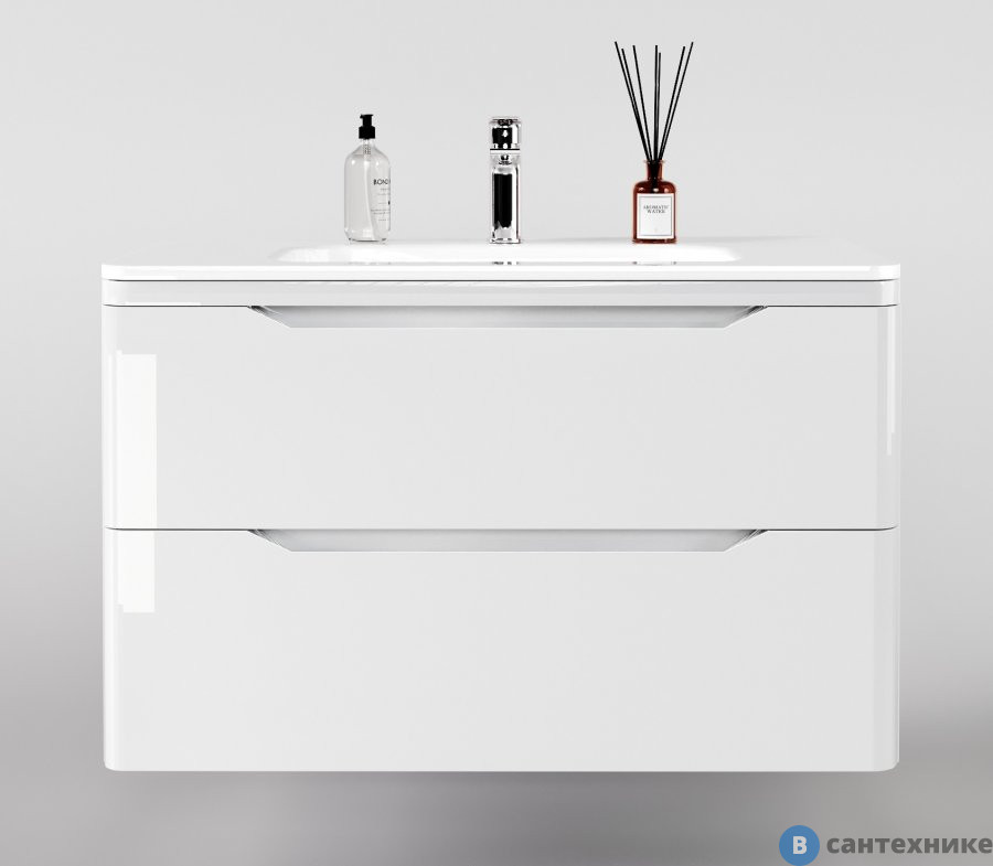 Тумба под раковину Style line подвесная Марелла 90 (2 ящ.) Люкс антискрейтч белый глянец, PLUS (2000672569001) (Россия) по
