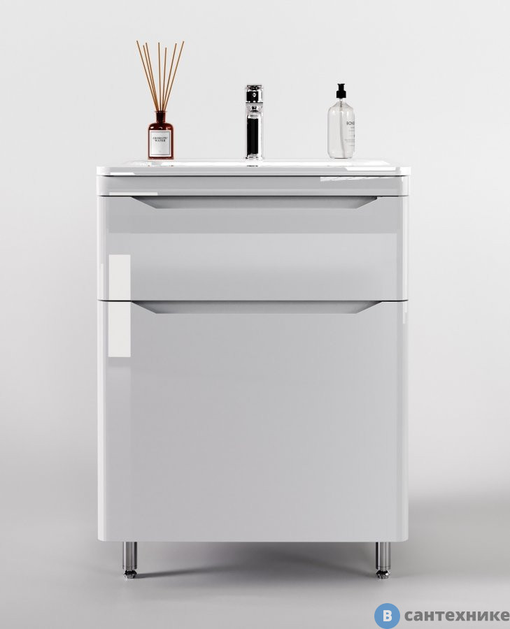 Тумба под раковину Style line подвесная Марелла 60 (2 ящ.) Люкс антискрейтч белый глянец, PLUS (2000672429008) (Россия) по