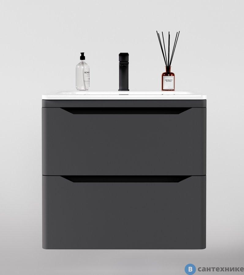 Тумба под раковину Style line подвесная Марелла 60 (2 ящ.) Люкс антискрейтч серый, PLUS (2000672473001) по