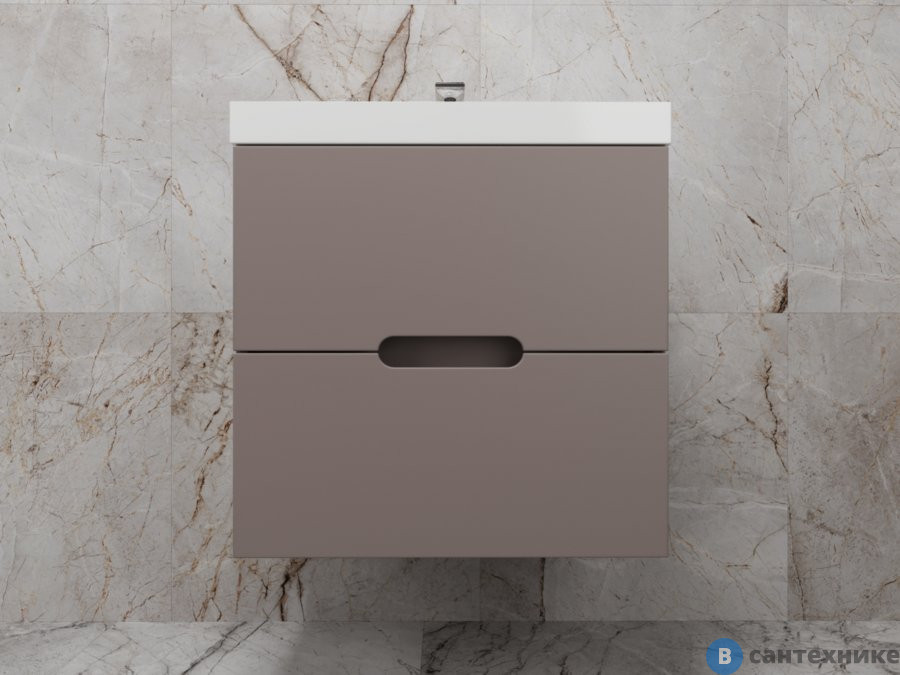 Тумба под раковину Style line подвесная Матис 60, Classic 60, (2 ящика), тауп темный, ЭМАЛЬ (4650134473179) (Россия) по