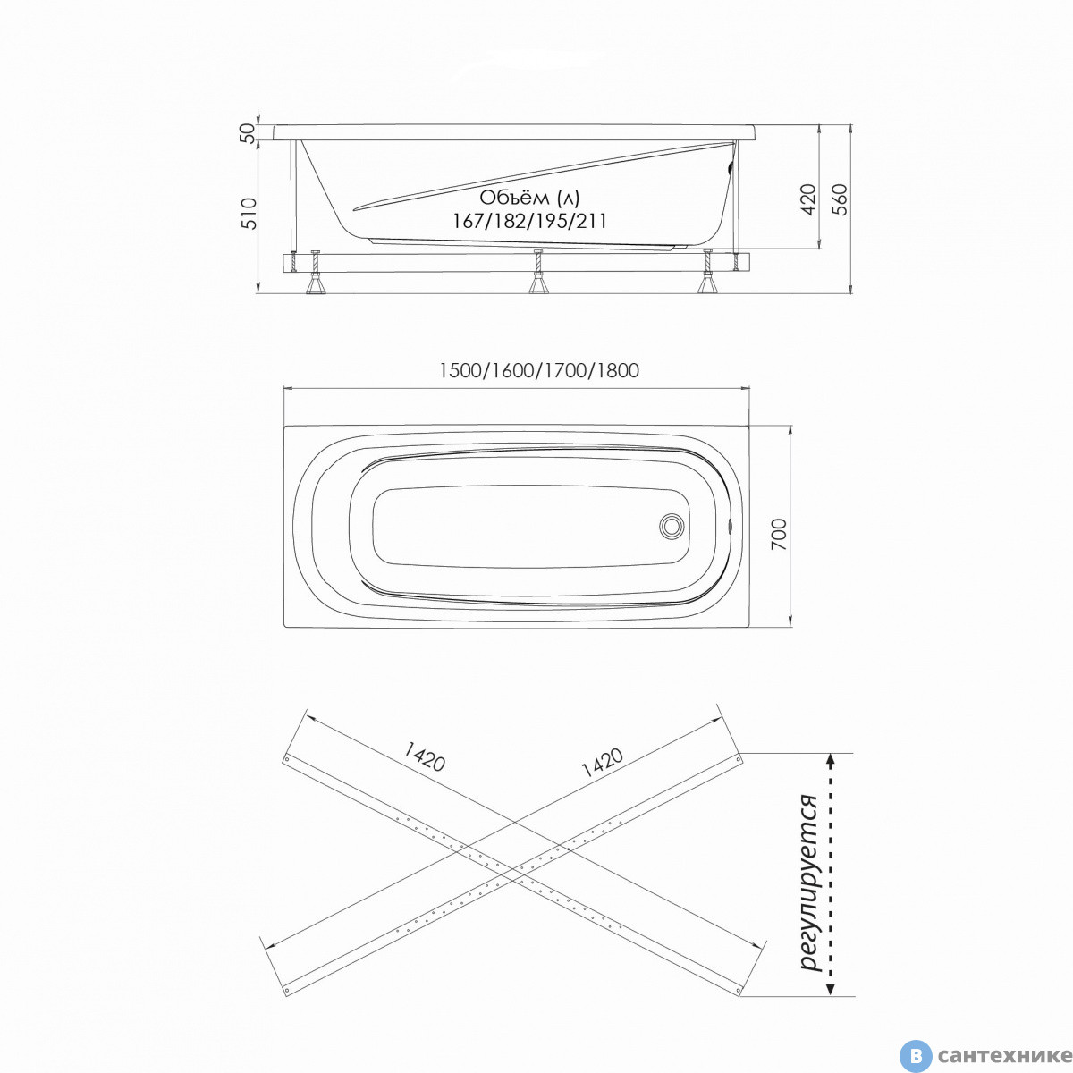 Ванна акриловая Niagara Atrio NG-A15070 (150х70х42) (Китай) по